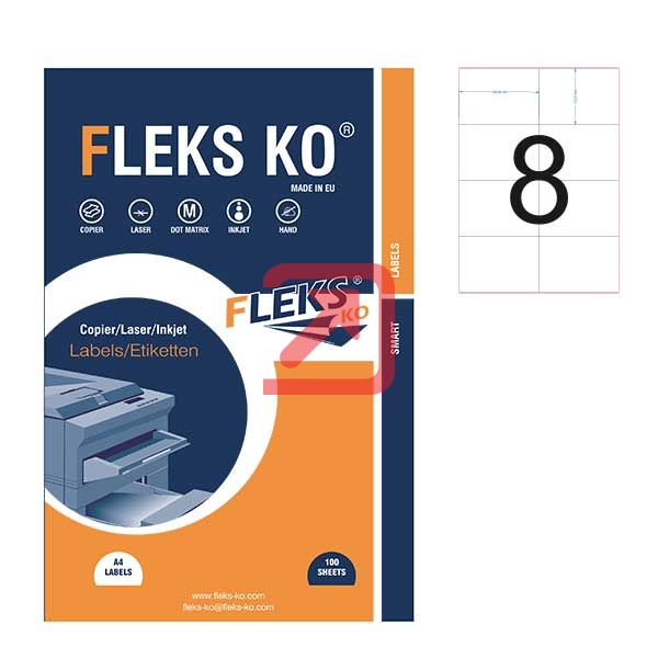 Етикети Fleks Ko Бели, прави ъгли, 105x74.1 mm A4, 100 л. 8 етик./лист