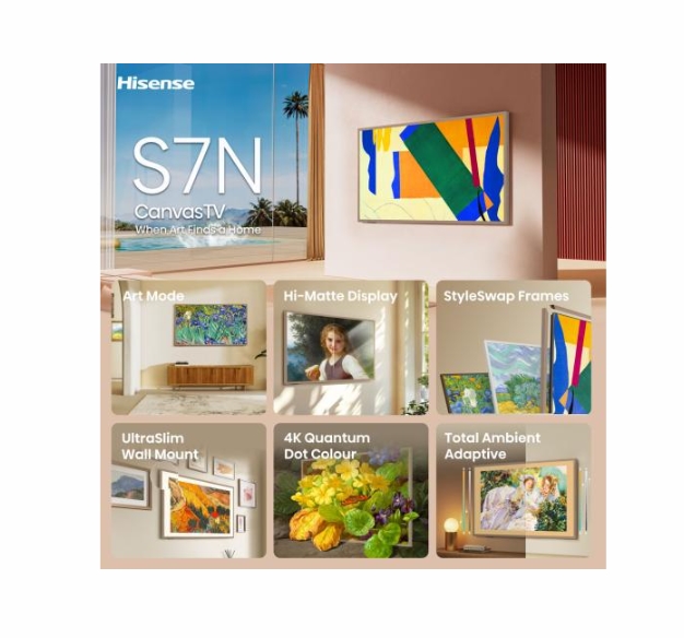 Hisense CanvasTV, 55",QLED 4K Ultra HD 3840x2160, 144hz, 4000:1, 400 nits, 16:9,VIDAA Smart OS,DTS Virtual X,HDR,HDR 10+,Dolby vision IQ, 4 xHDMI,DVB-T2/T/C/S2/S, Black