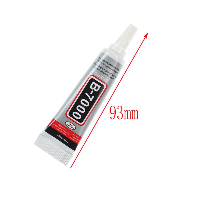 Лепилото B7000 има саморазливна консистенция и се използува за залепване на дисплеи на мобилни телефони, играчки, цветя, украса, бижута.