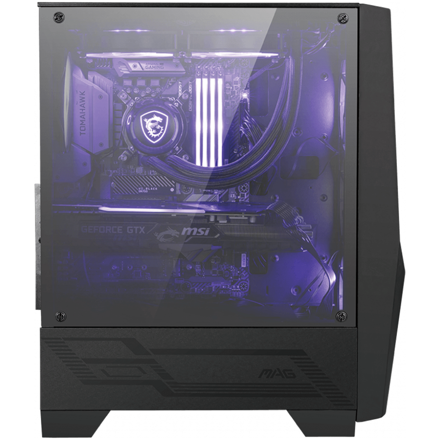 MSI MAG FORGE 100M, Mid-Tower, ATX/Micro-ATX/Mini-ITX, 2x USB 3.2 Gen 1 Type-A, 1x Audio/1x Mic, RGB Hub, RGB Button, 3x 120mm Fans (2x RGB), Mesh Front Panel, Tempered Glass