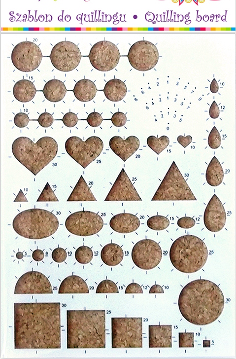 The quilling board consists of 36 holes in a few different sizes and shapes and the foam base.